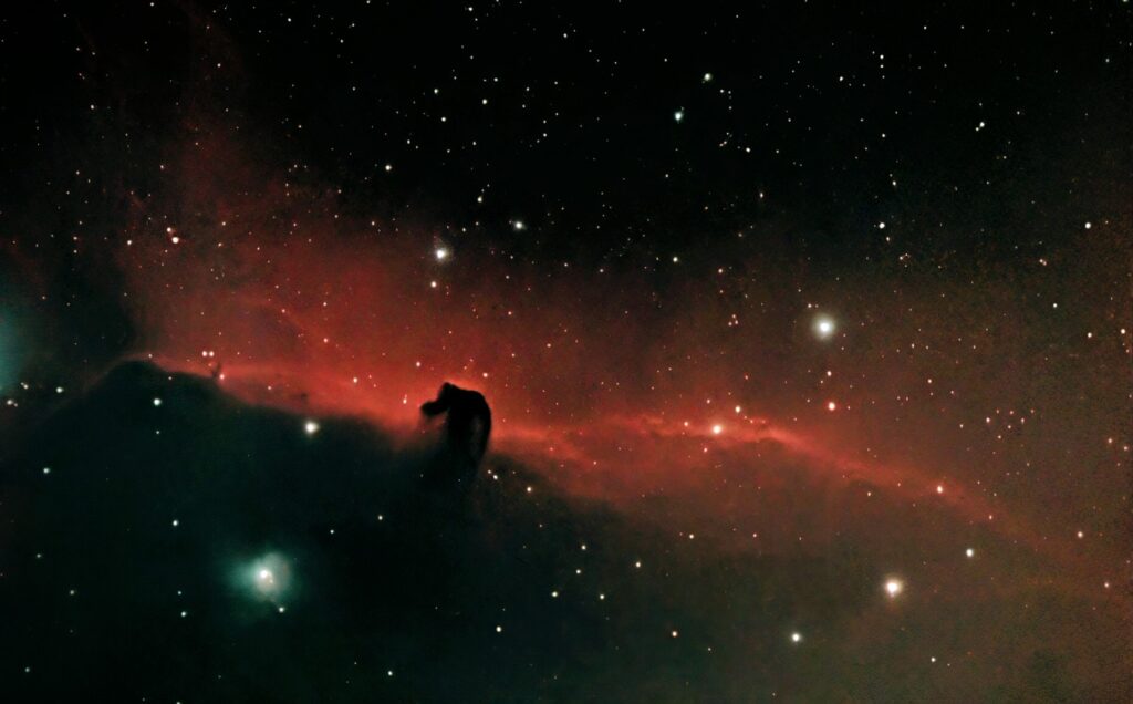 星雲の西側の赤く光っている部分は、暗黒星雲の背景にある水素ガスが近くにあるオリオン座σ星からの紫外線を受けて電離したものである。馬頭星雲の黒い色は多量の塵を含んでいることによる。星雲から飛び出したガスは強い磁場によって細く集められている。馬頭星雲の根元近くの明るい点は生まれたばかりの若い星である。(出典WikiPedia)